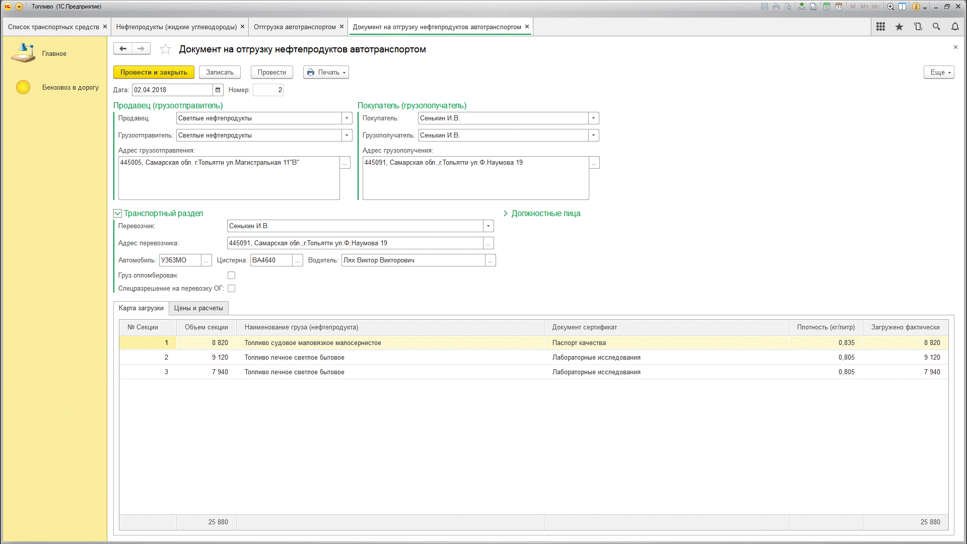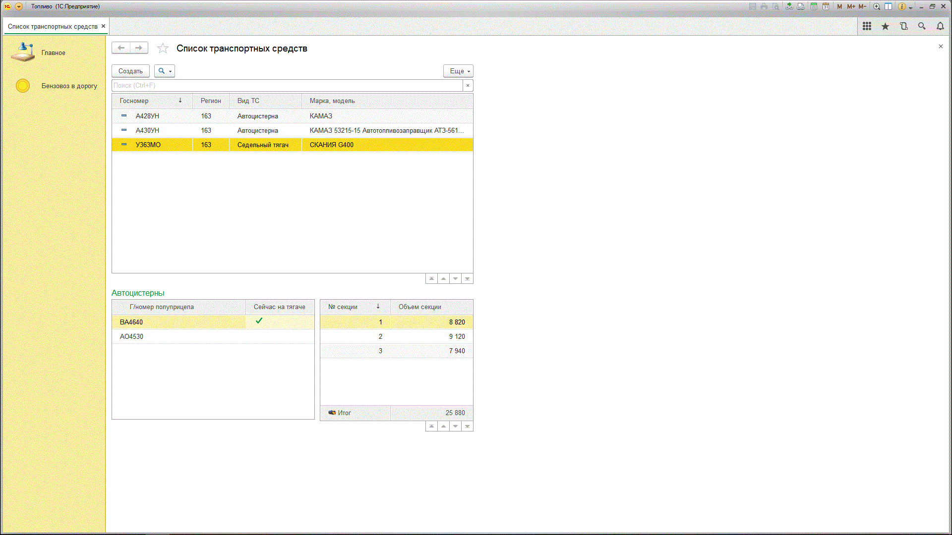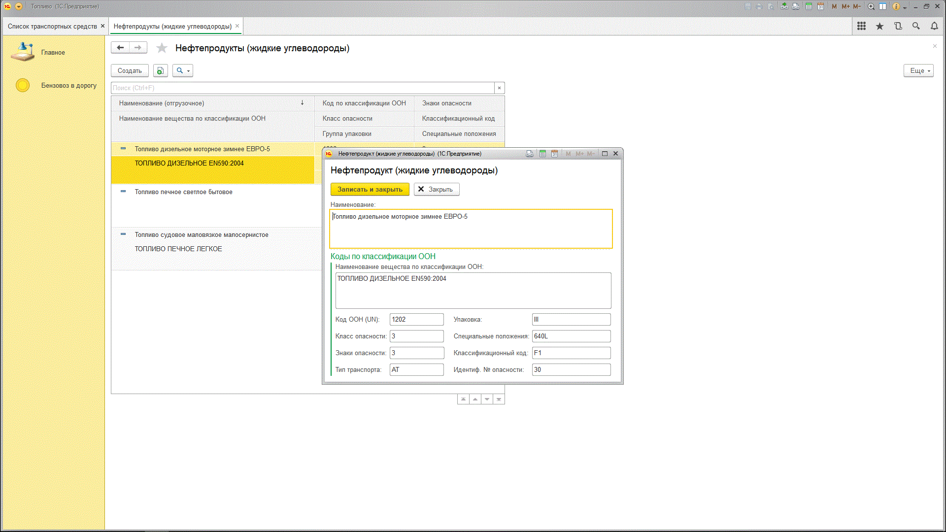 Микроконфигурация не предназначена для накопления информации и фомирования отчетов. Заказчик исходил из того, что большинство напечатанного в этой конфигурации вообще не доберется ни до чьей отчетности. Это программа подготовки и печати трех первичных документов: "Путевой лист специального автомобиля", "ТТН", "ТОРГ-12". Основной акцент сделан по двум справочникам. Транспортные средства и Номенклатуры. В транспорте ведется учет подвижного состава и емкостного парка (автоцистерн). "Помнится" тарировка емкостей и их разбивка на секции. В справочнике Номенклатуры целая группа реквизитов хранит информацию из Европейского классификатора ДОПОГ, которая обязательно должна присутствовать в ТТН.