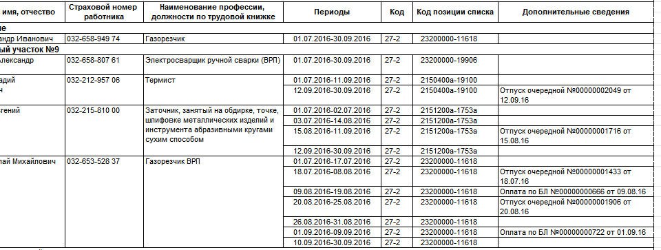 Формирует отчет по сотрудникам с вредными условиями труда в формате: Сотрудник, страховой номер ПФР, должность, периоды работы с разбивкой кодам позиции списка и основанием для них. Отчет для 1с 82 ЗУП (По пожеланиям возможны варианты!)