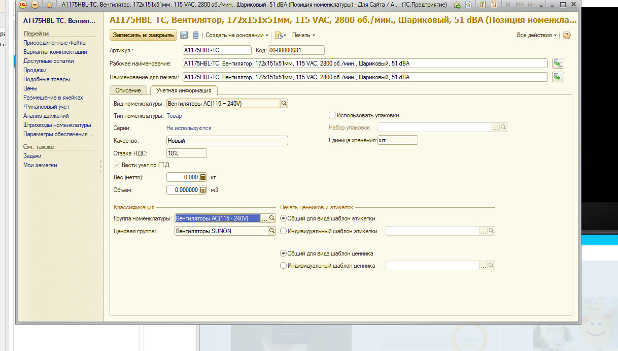 категория товара = вид номенклатуры