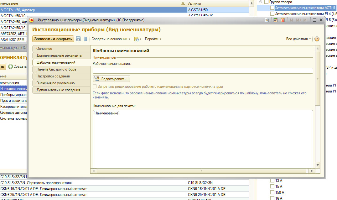 наименование и наименование для печати из файла колонки "код" - "наименование"