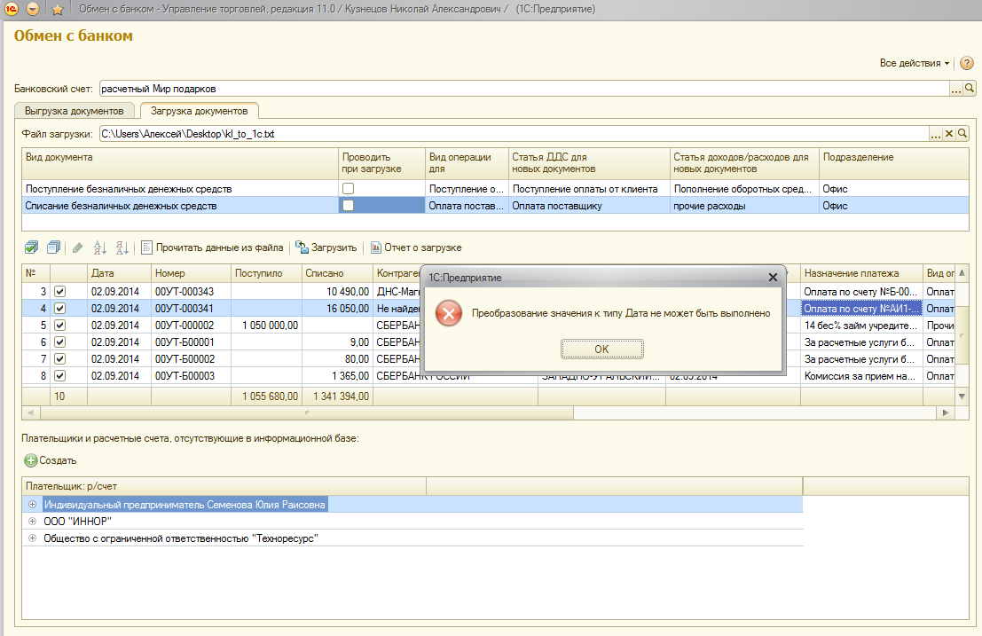 Решить проблему с загрузкой банка в 1С УТ 11