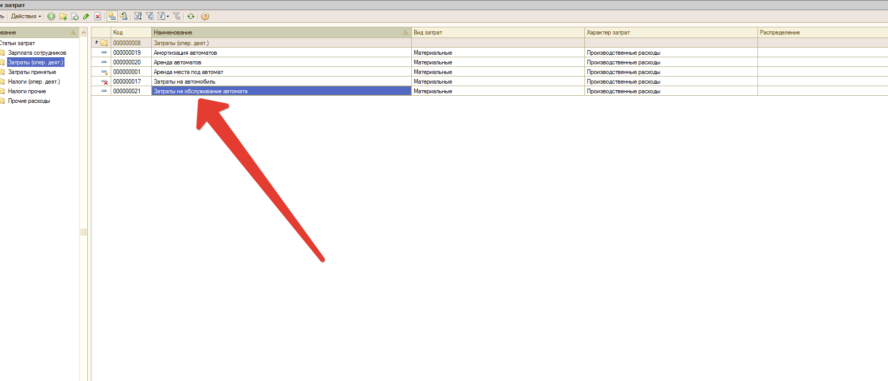 В документе будет использоваться только одна статья затрат "Затраты на обслуживание автомата". И будет два алгоритма расчета на выбор пользователя (создать соответсвующие перечисления) "равномерно по количеству" и "пропорционально по количеству обслуженных":