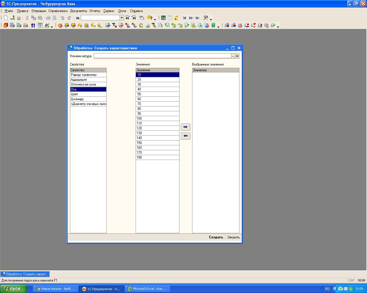 Поле номенклатура - выбор номенклатуры для которой создаются характеристики