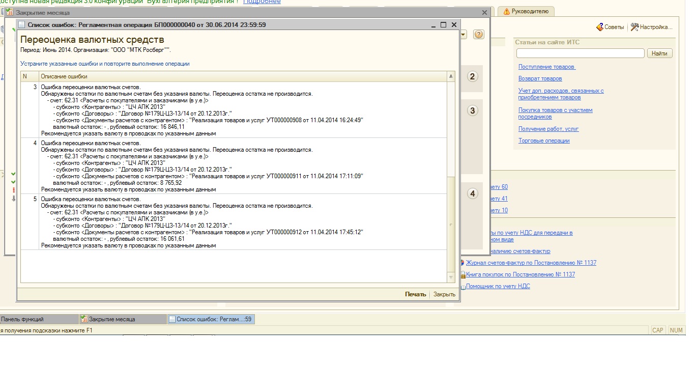 Закрытие месяца - проблемы с пунктом Переоценка валютных средств