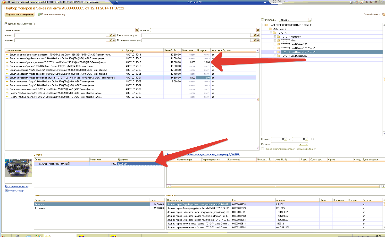 4) Поправить отображение остатков в форме подбора аналогично п. 4 (скрин)