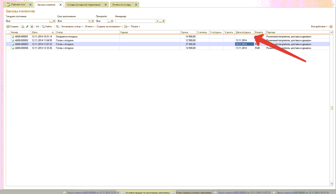 5) Не попадает дата отгрузки в список заказов клиента (скрин) - хотя в заказе она проставлена.