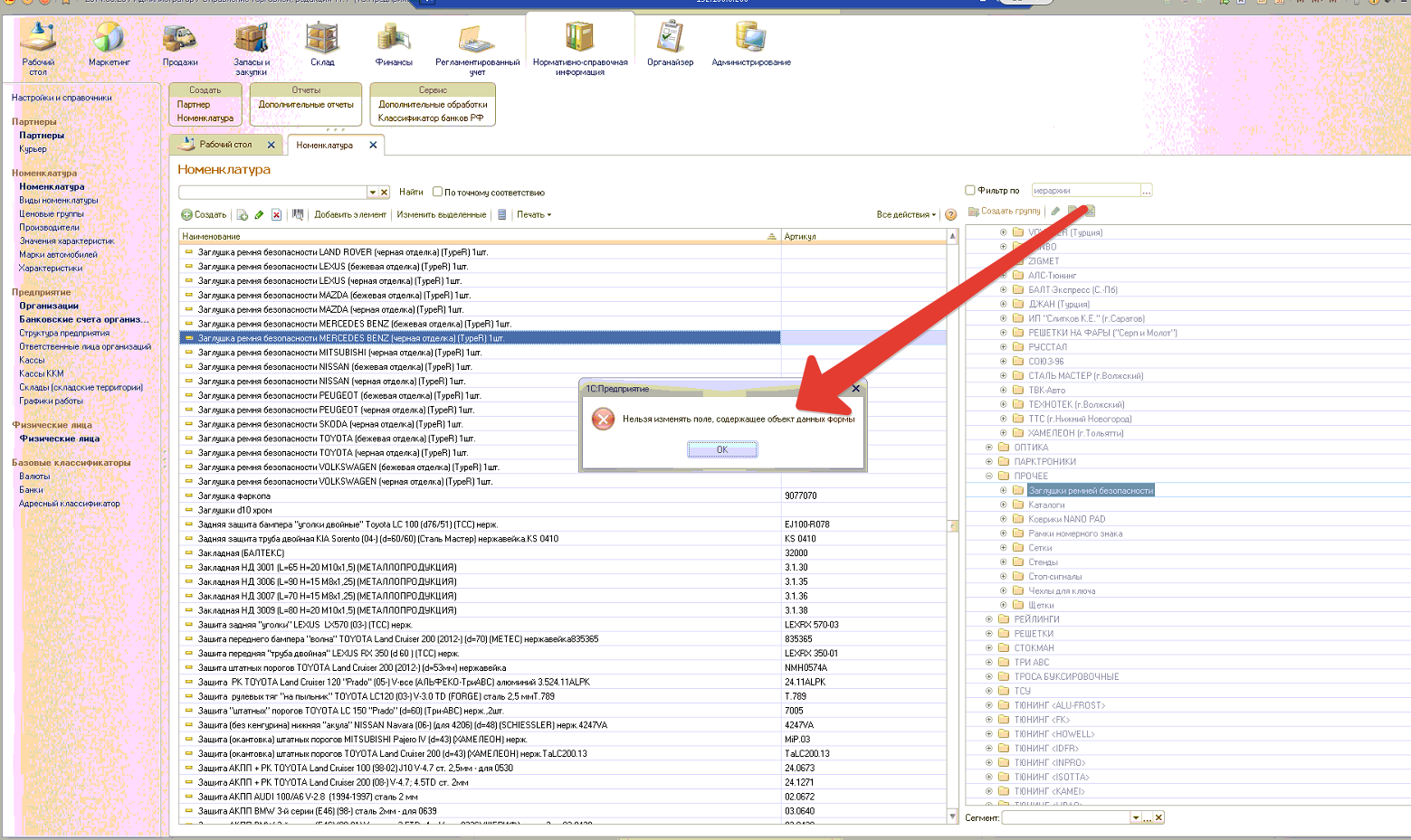 6) При копированиии номенклатуры - ошибка - скрин (даже под админом). Исправить.