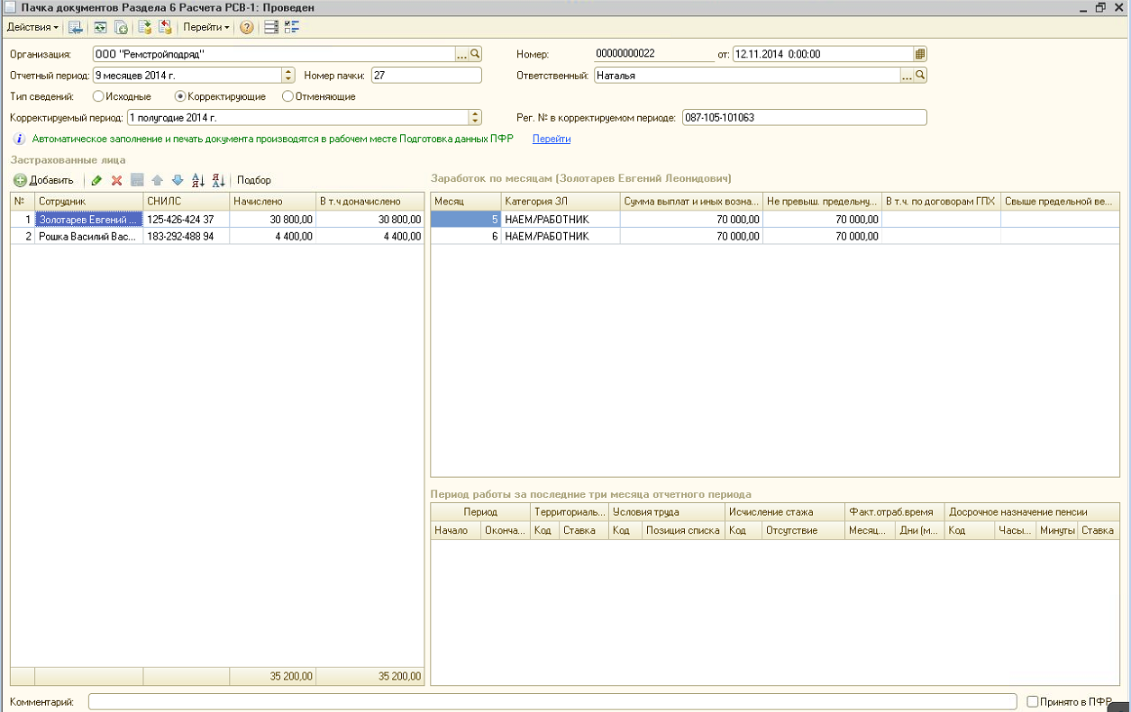 - Как заполнить корректирующие сведения по некоторым сотрудникам за 1 квартал и полугодие 2014 г. в текущем отчетном периоде?