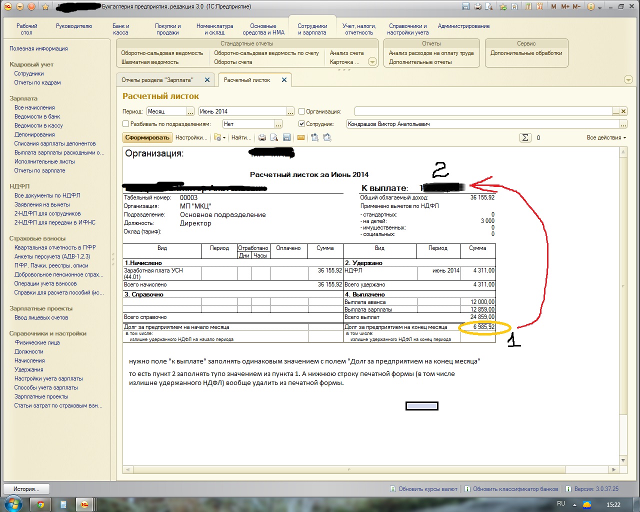 БП 3.0, отчет "Расчетный листок" сделать внешним и внести два мелких изменения