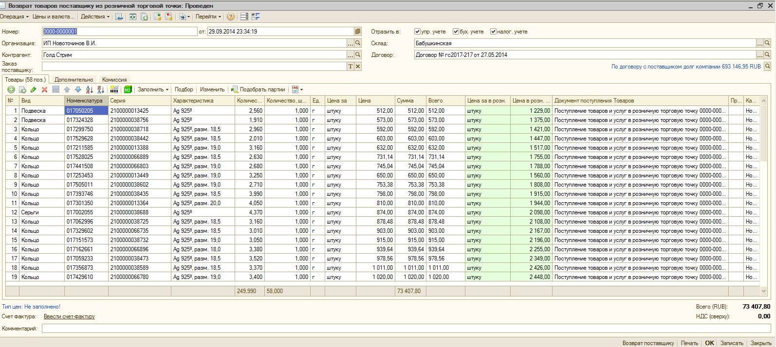 3.На изделия проданные в серую можно было оформить возвратную накладную для поставщика (в дальнейшем для проведения взаиморасчетов по поставке, возврату и оплате0