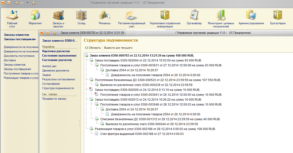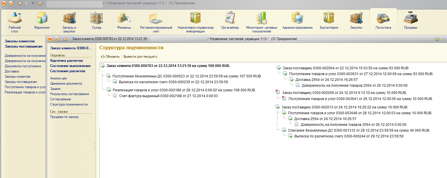 Необходимо, в случае, если в дереве присутствуют одновременно Заказ клиенту и Заказ поставщику,