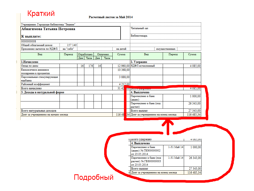Полная детализация по Выплатам должна быть такая же, как в Подробном расчетном листке.