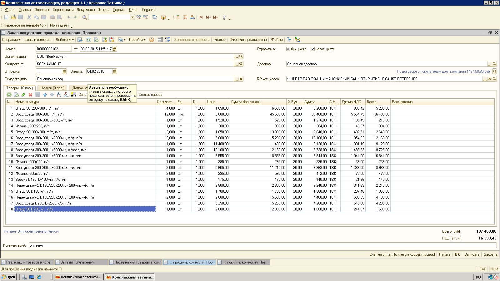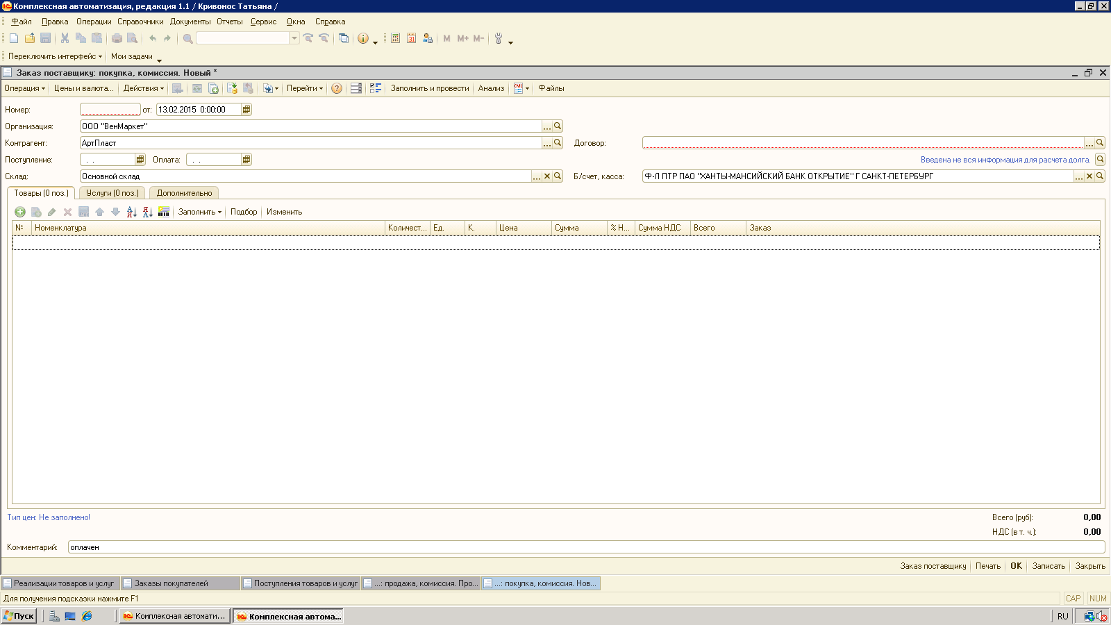 Не заполняется заказ поставщику в КА 1.1 при создании на основании заказа клиента (скриншоты)