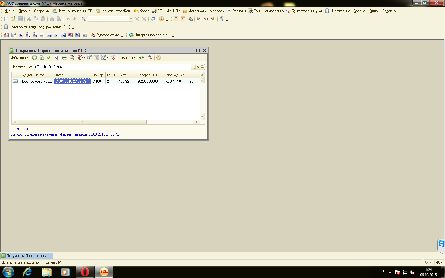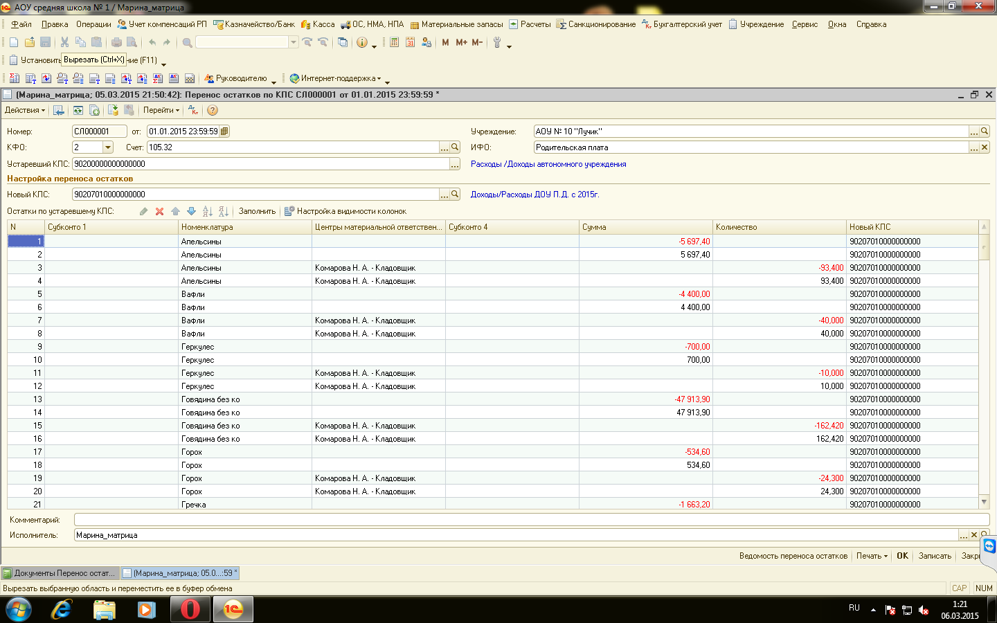 Хотела остатки входящие перенести на другой КПС так по счету 105.32 выводит какую то ерунду.