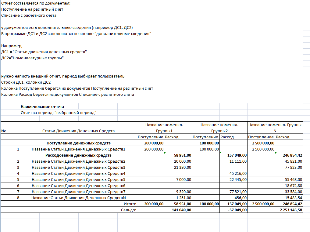 Бухгалтерия предприятия 3.0 типовая конфигурация. Нужно написать внешний отчет (или, если возможно, настроить какой-то из режима предприятие). Задание на скрине.