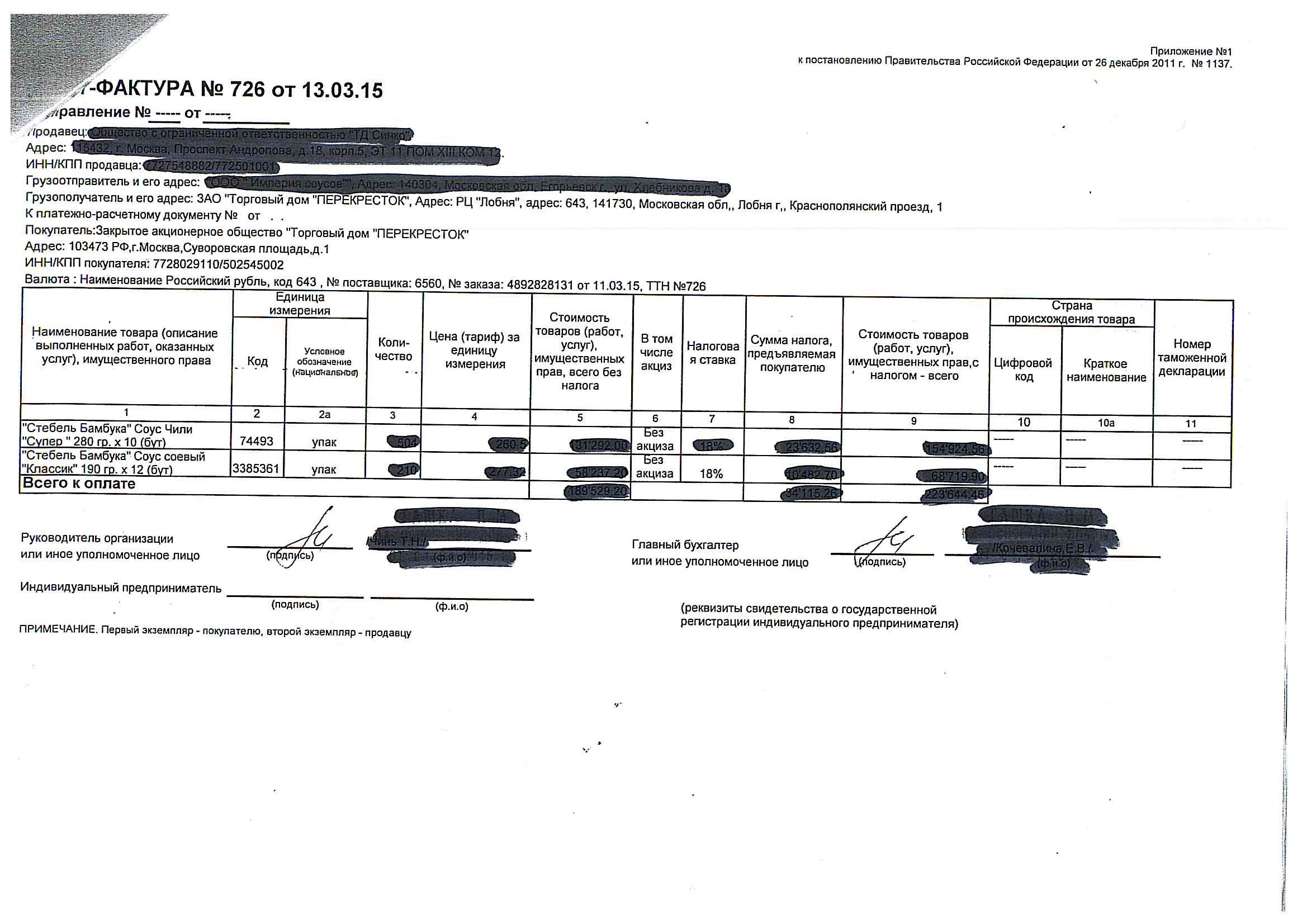 - код поставщика, № заказа и количество паллет в ручную забиваются и заполняются в последней строчке шапки СФ после " Валюта :....код 643, " ( см. файл СФ)