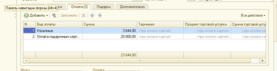 Наличные" и в "Сумма продаж: Платежная карта". та же ситуация и с другими сложными оплатами в чеке (наличка + подарочный сертификат,