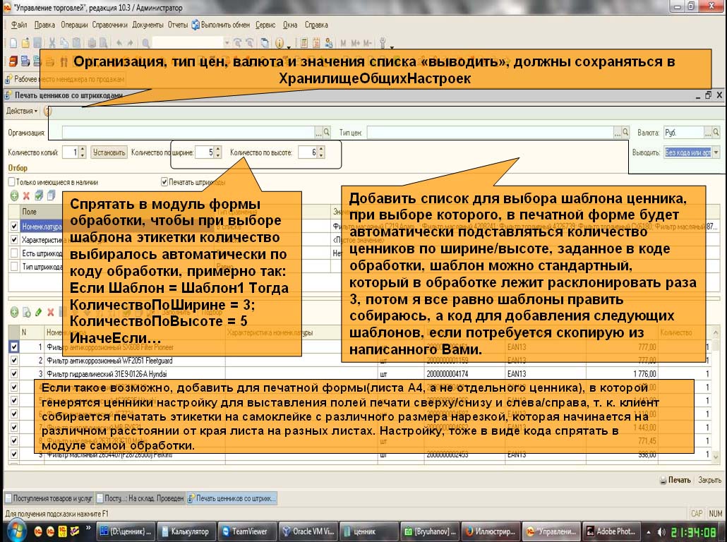 Нужно доработать имеющуюся обработку печати ценников.