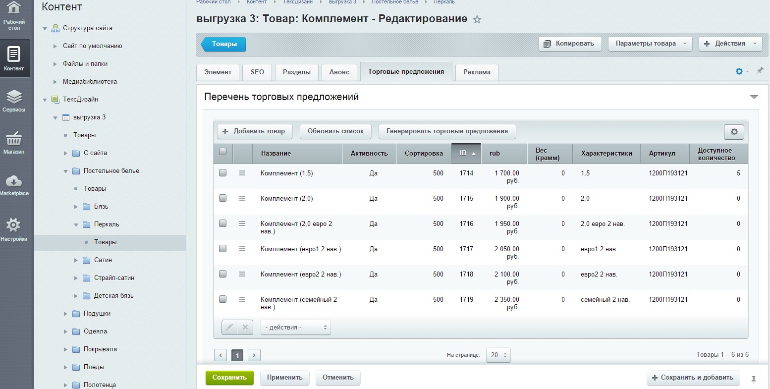 Требуется настроить выгрузку артикулов в "Битрикс малый бизнес" из 1с 8,2 УТ 11.