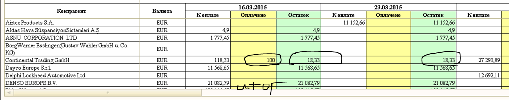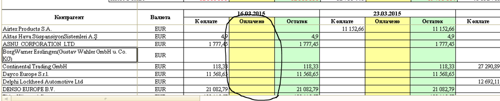 Есть база (во вложении). В ней есть регистр накопления ВзаиморасчетыСПоставщиками. Необходимо создать отчет такого вида (во вложении 2 картинки). Колонки сгруппированы по-недельно по дате оплаты из регистра. Все просроченные даты (даты ранее понедельника текущей недели) выводим на первую неделю (текущую неделю). При выводе отчет колонка Оплачено пустая. После вывода пользователь может вводить суммы в колонку оплачено и должен изменяться остаток по-строчно в каждой колонке и подбиваться итог по колонке внизу и справа. Обратите внимание, что остаток на каждую неделю переходящий с предыдущей – при изменении оплаты, меняется и остаток каждой недели.