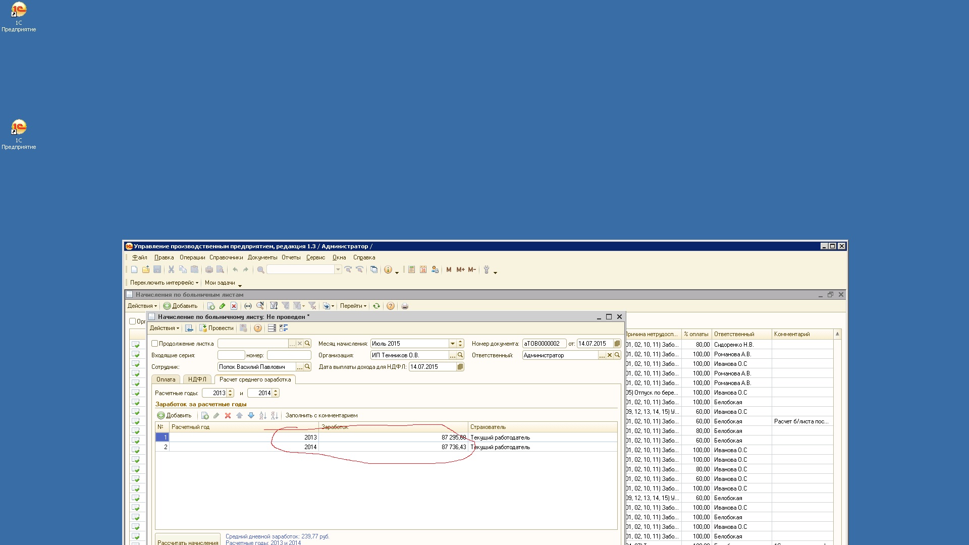 При начислении больничного листа средний заработок за предыдущие 2 года расчитывается ( он больше МРОТ), но в расчет не берется, при расчете с комментарием пишет, что заработок для расчета пособия 0. Могу дать удаленный доступ... Ошибка возникла после свертки базы. Скриншоты приложил....