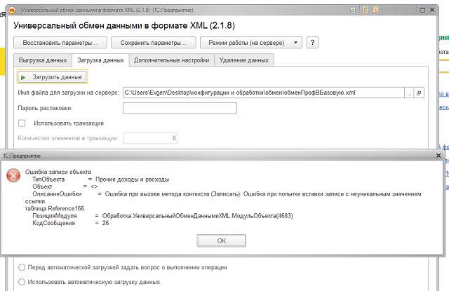 Эта ошибка не в правилах, это фишка - в приемнике отсутствуют предопределенные элементы, которые есть в источнике. Решается доработкой обработки загрузки. Вышлю доработанную версию обработки универсального обмена