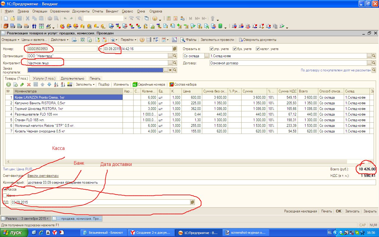 Критерий для попадания "Реализация товаров и услуг" в Реестр - заполненное поле "ДД" (дата доставки)