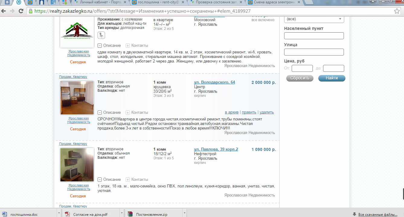 Там есть список объектов недвижимости.