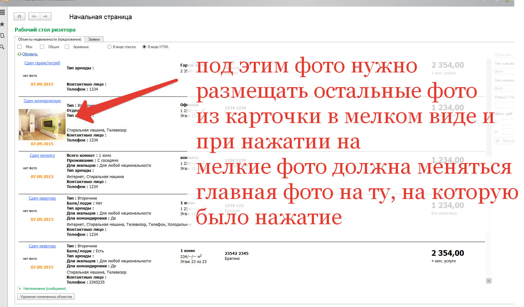 В ней есть список объектов, который выводится в HTML формате. На каждую строку списка выводится картинка. В самом элементе хранится несколько фотографий, а в список выводится одна главная фотография (скриншоты во вложении).