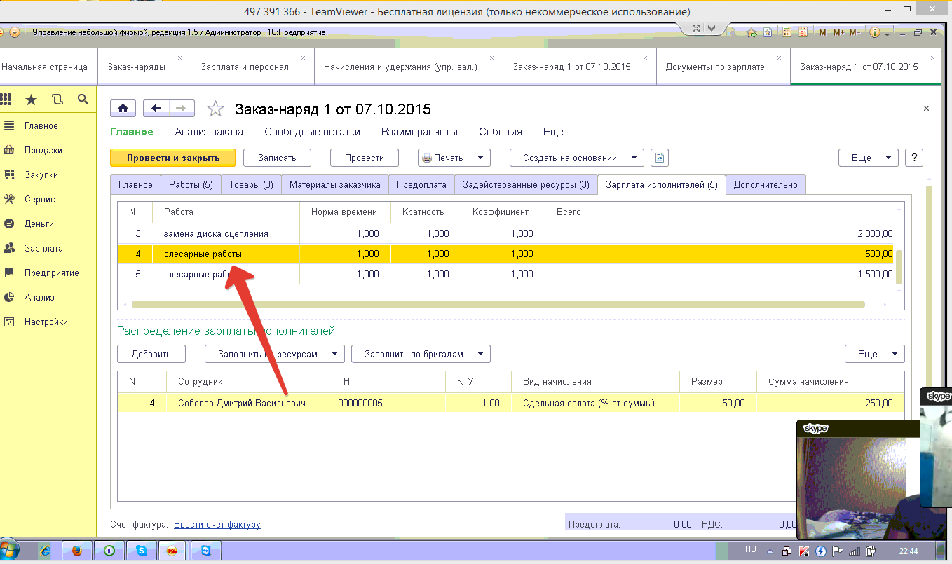 - работы, сделанные сотрудником(из заказ-наряда)