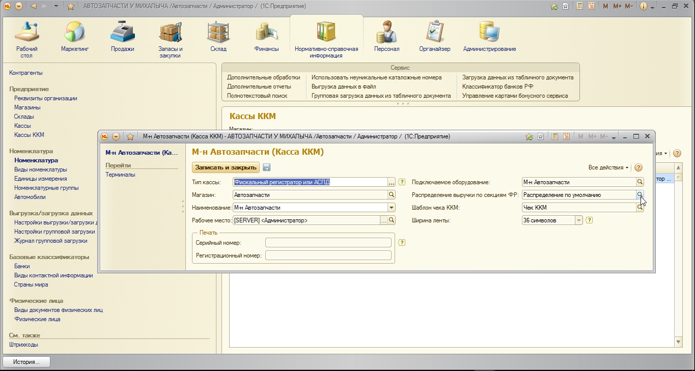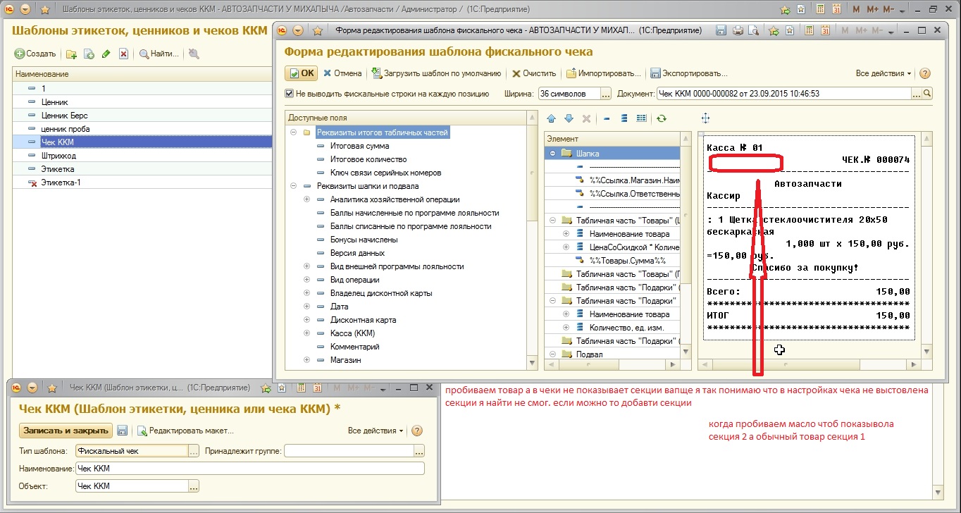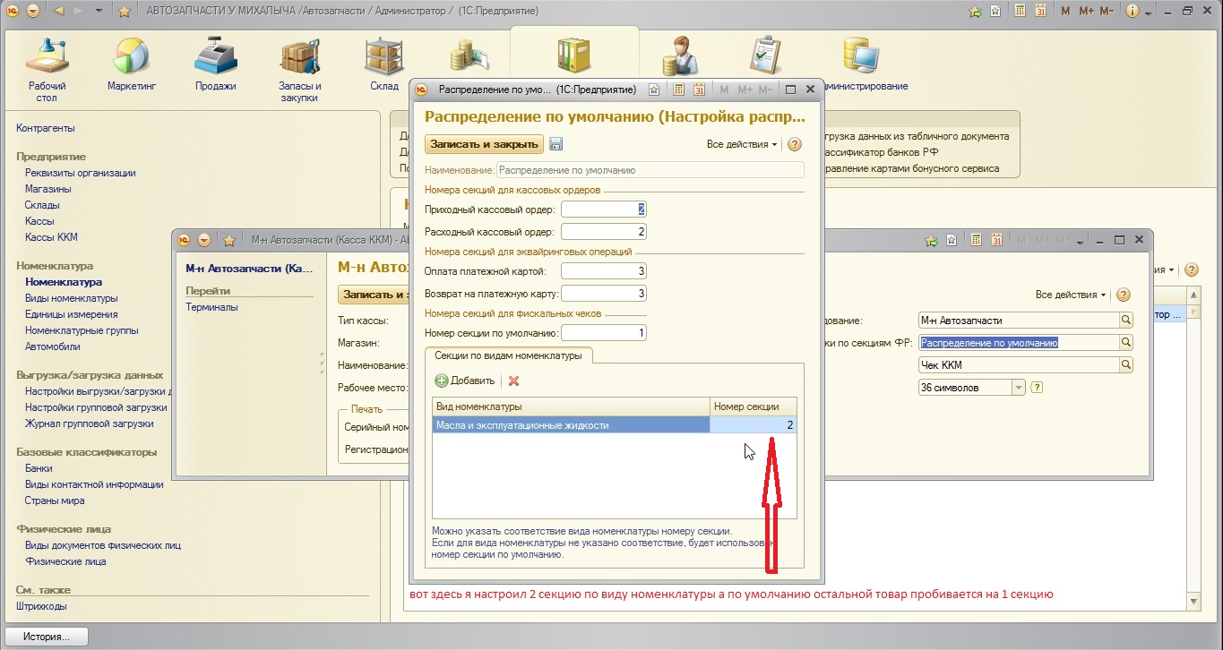 Нужно добавить отдел по секциям 1 секция для основного товара 2 секция для масла на чеках не показывает даже 1 секцию.
