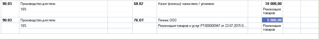 Теперь что бы закрыть по Кредиту счёт 76.ОТ нужно по идеи сделать документ Реализация отгруженных товаров и выбрать в нём наш когда то сделанный РТиУ под номером 947, тогда формируется проводка по КТ 76.ОТ в ДТ 90.03 на всю сумму НДСа чего быть не должно по словам нашего гл. буха + ещё др. бредовые проводки в Реализации отгруженных товаров в этом доке формируются при этом которые в корне не устраивают нашего гл. буха. Реализация отгруженных товаров в итоге при закрытии 76.ОТ по КТ наш гл. бух пользоваться короче никак не хочет. Поэтому собственно говоря =>