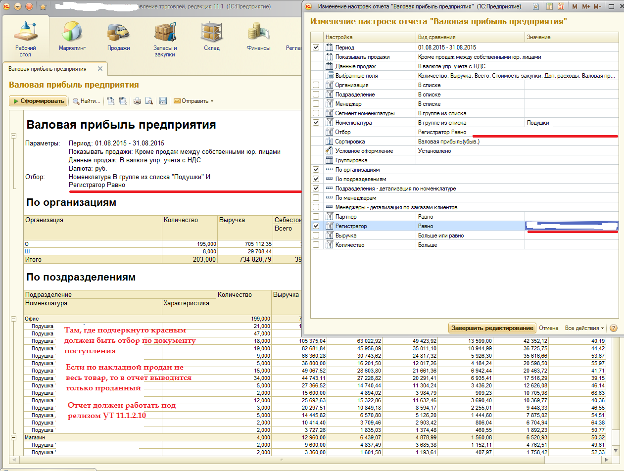 УТ 11.1.2.10 Доработать типовой отчет Валовая прибыль так, чтобы можно было формировать валовую прибыль по документу поступления.