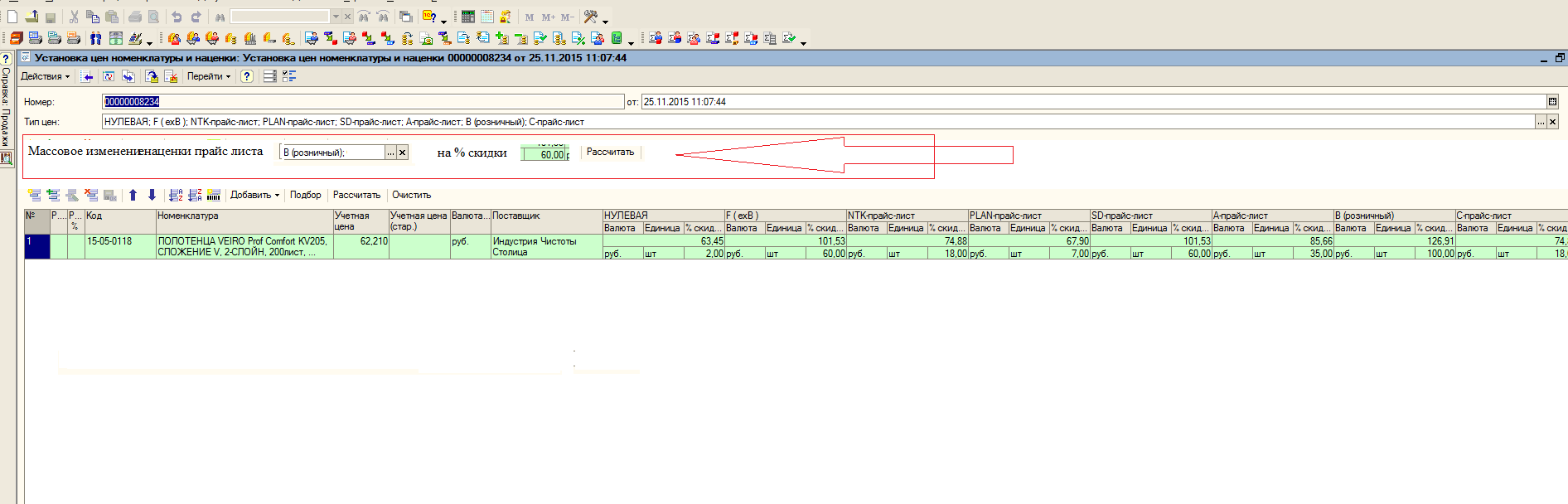Доработать документ, что бы была возможность сделать общую наценку для типа цены (прайса).