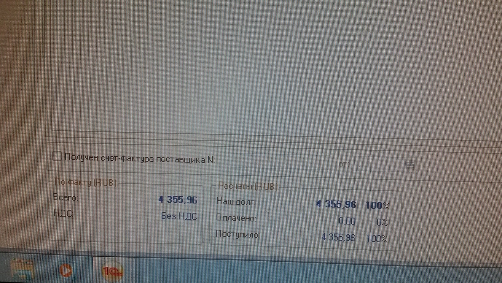 Проблема при проведении документа поступление товара и услуг.