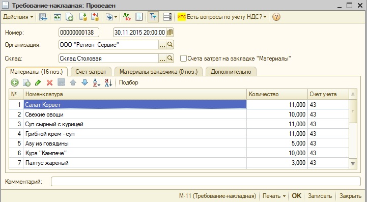 - в табличную часть "Товары" должны попасть все товары из файла (за этот день) с выбранным видом номенклатуры "Блюдо".