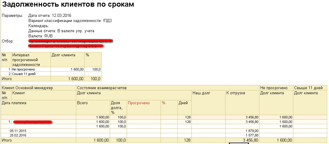 Для УТ 11.1.1.11 сделать Задолженность клиентов по срокам