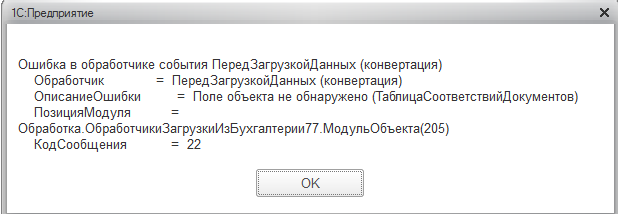 После загрузки через файл 8.3 вылетает по ошибке (см приложение). База 7.7 типовая, требуется перенос остатков, справочников, документов с 01.01.16 по 21.03.16