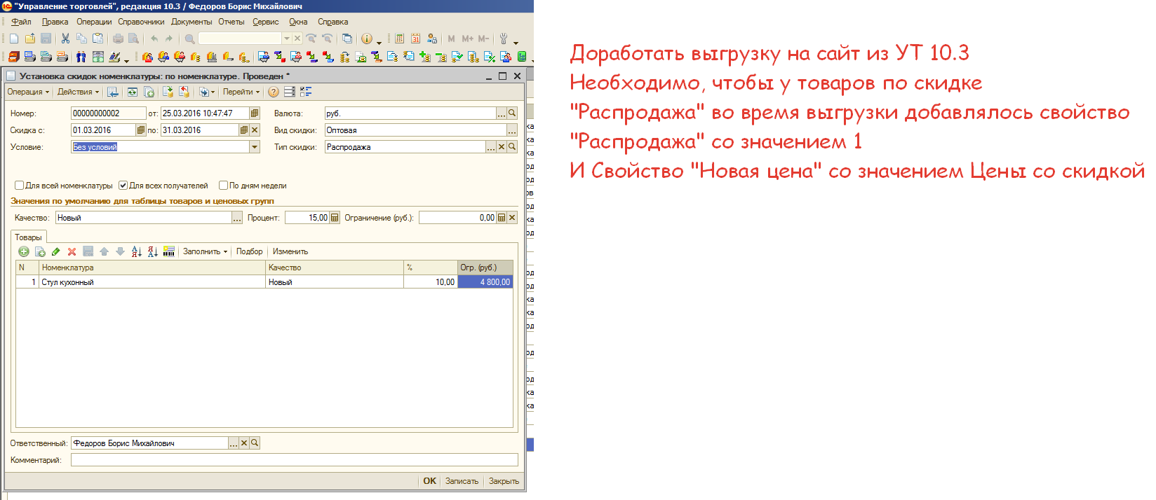 Доработать выгрузку на сайт УТ 10.3