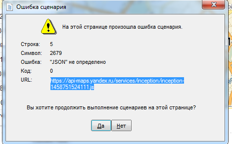 Яндекс карты, с недавнего времени пеерстали нормально работать, при любом действии ошибка сценария, в остальном выполняет весь функционал, ошибка во вложении