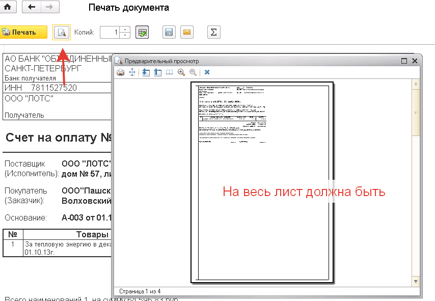 2. При нажатии на "Печать комплекта" выводятся ПФ Акт и Счет на 1/4 страницу, необходимо сделать по всей ширине.