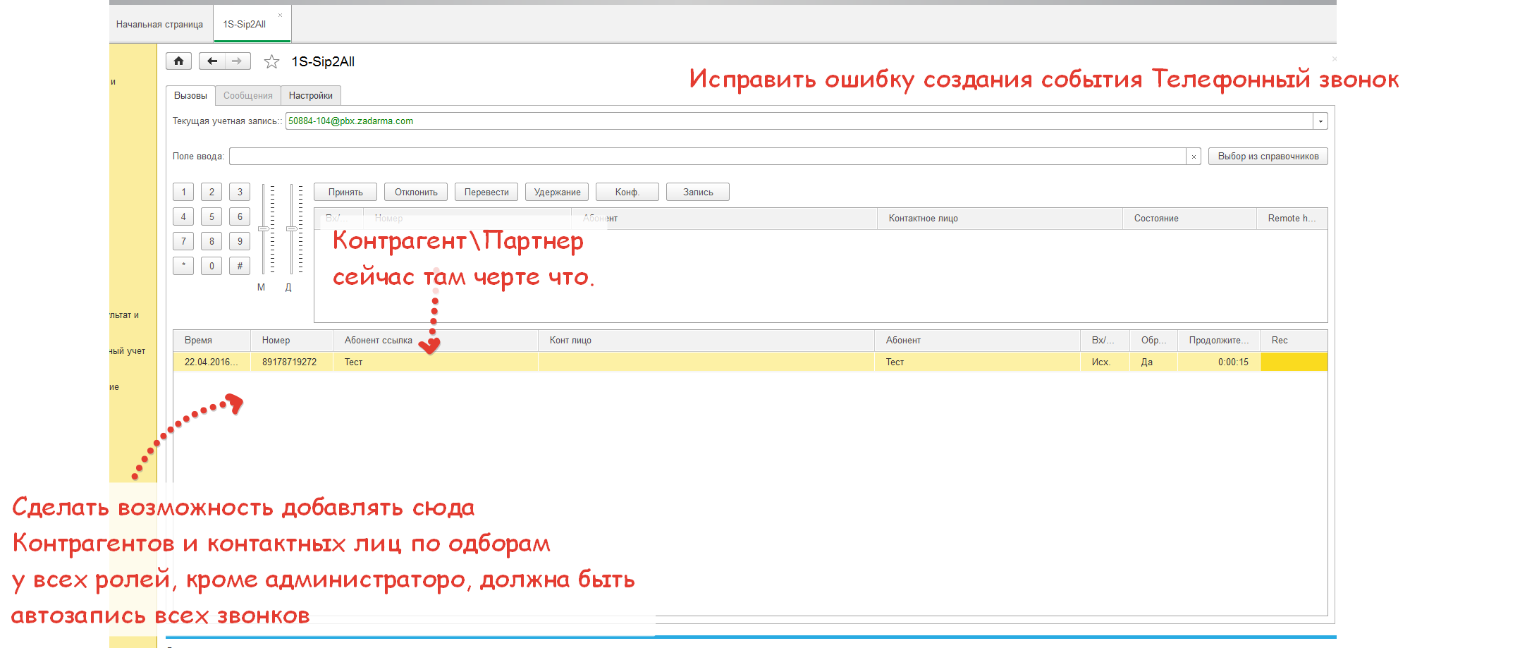 Внести незначительные изменения в функционал Софтфона для 1С, не касаемые протоколов связи и т.д и исправить некоторые ошибки: