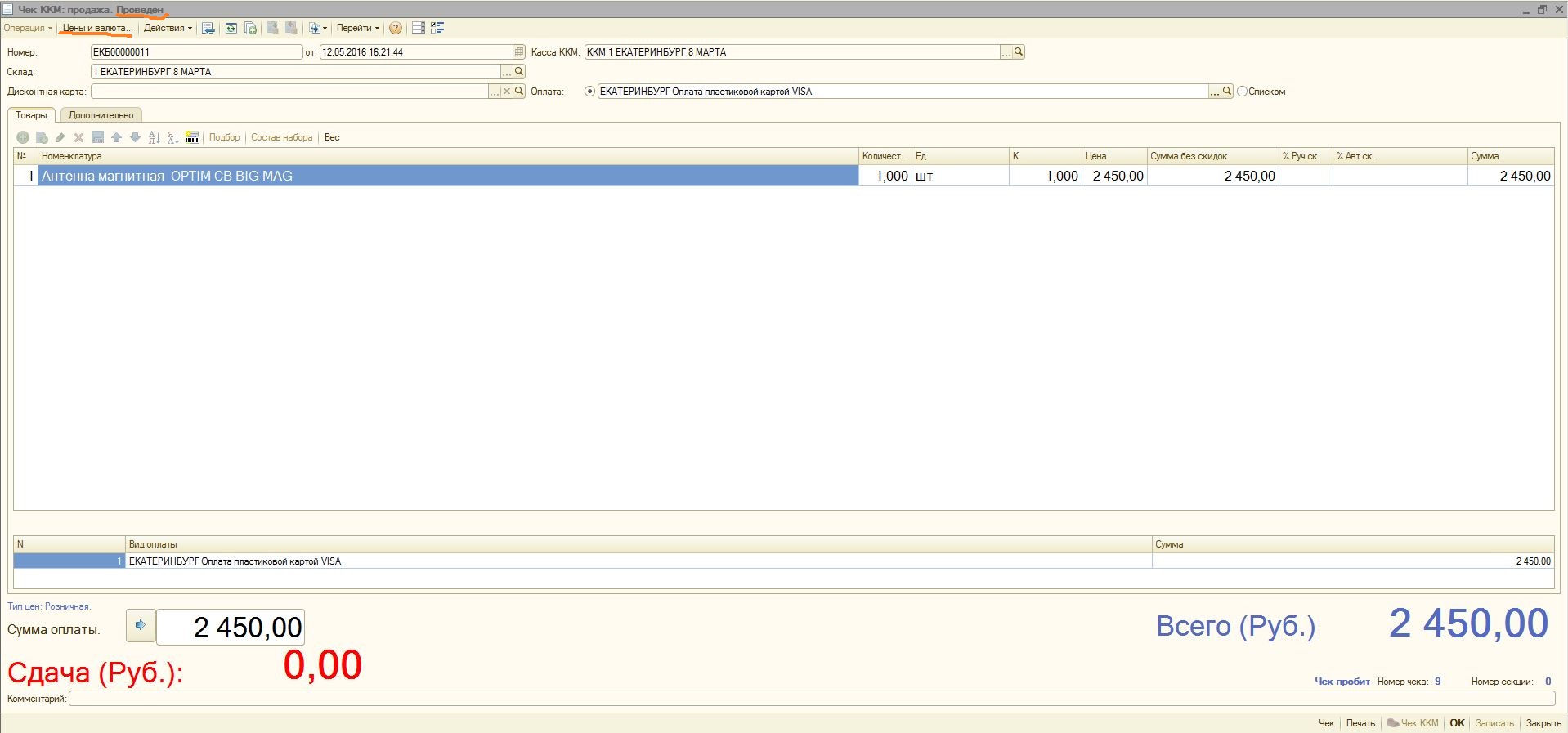 Глюк в УПП Документ ЧекККМ проведен, кнопка цена и валюта активна