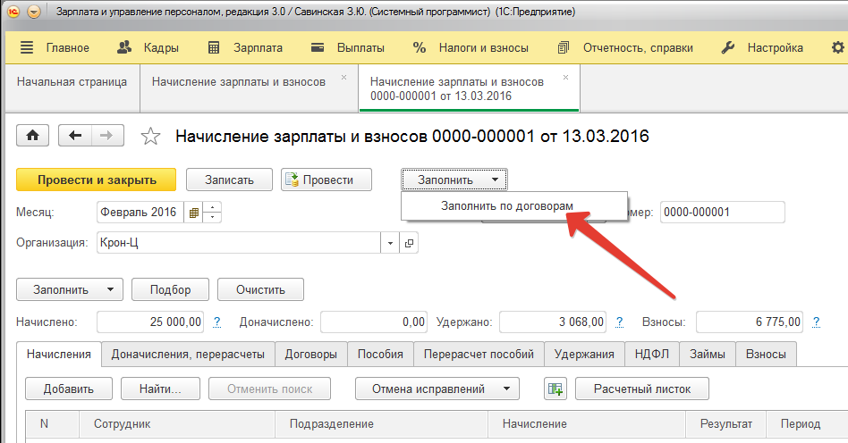 Заполняет Договорников верно, но помимо этого рассчитывает НДФЛ и Страховые взносы на последних закладках по всей организации. А нужно только по договорникам. Как вариант добавить по завершению процедуры чтобы удаляла на этих закладках всех сотрудников, которые не присутствуют на закладке "Договора"