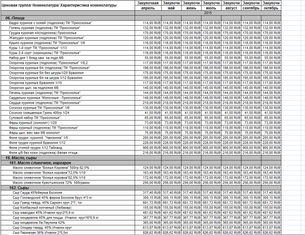Требуется отчёт по средним ценам закупа за период (месяц).