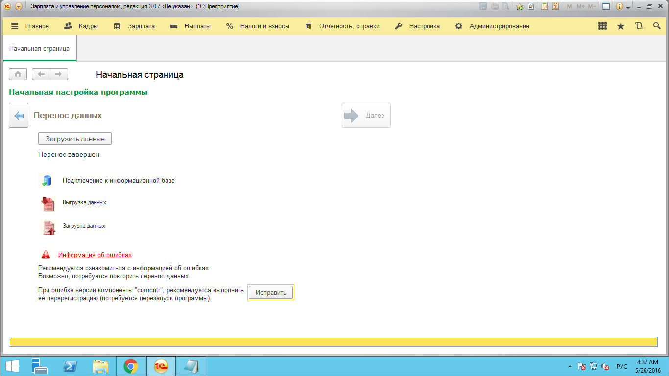 Зарплата и управление персоналом, редакция 3.0 (3.0.25.109) чистая запускаем при первом запуске загрузку с Бухгалтерии 8, выпадает на ошибку.