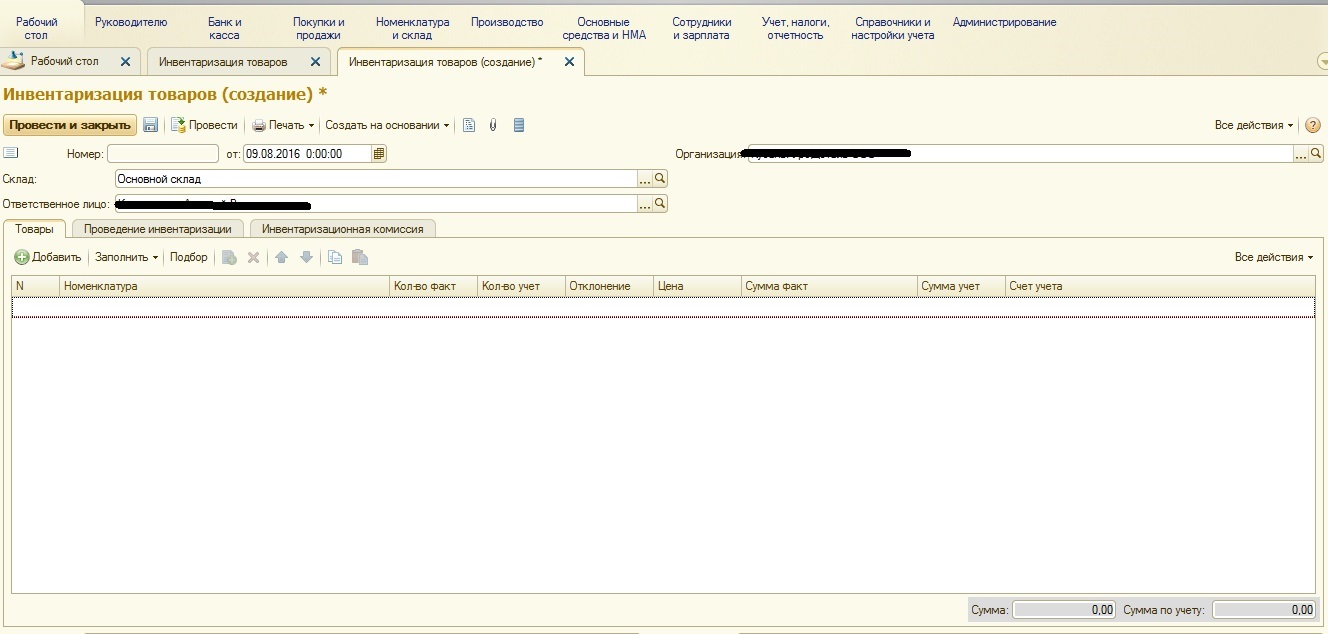 Документ Инвентаризация товаров.