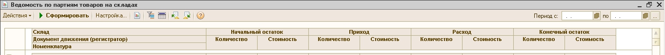 Отчет Ведомость движения товаров в закупочных ценах в УТ. 10.3