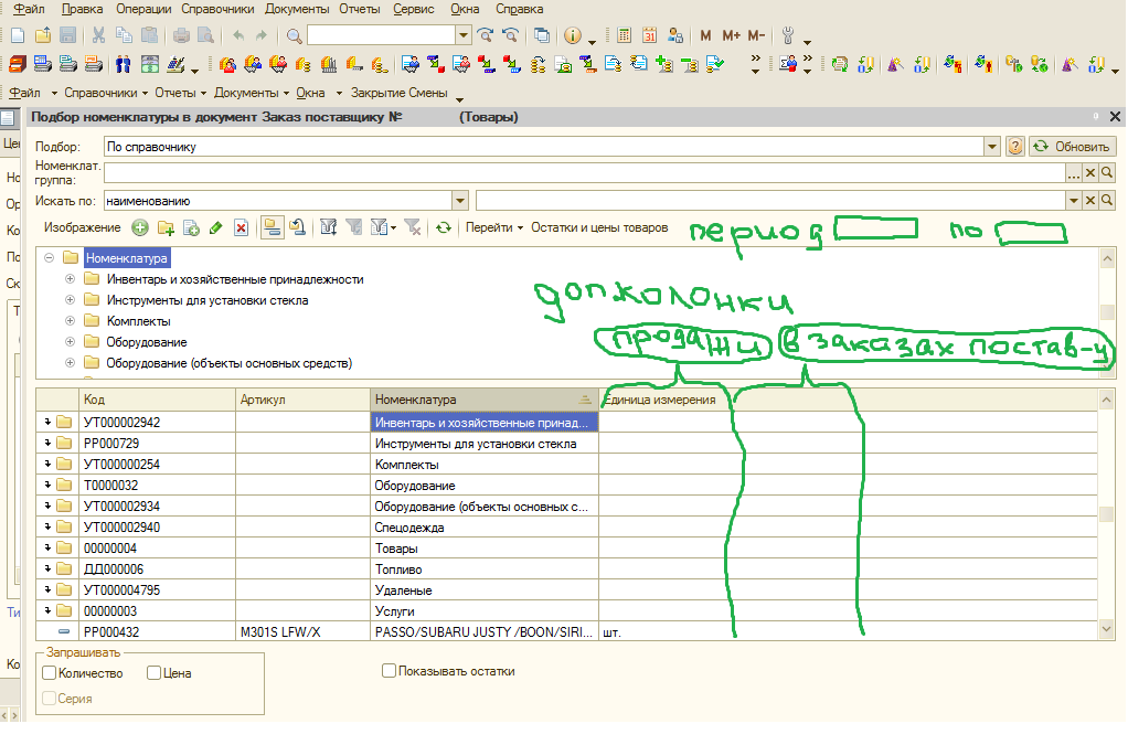 Необходимо доработать обработку подбор номенклатуры.