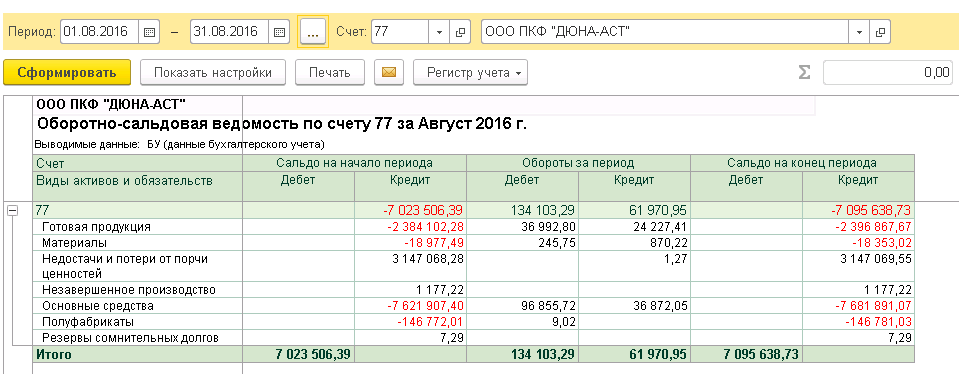 С начала 2016 года при закрытии месяца стали формироваться отрицательные проводки на 09 и 77 счета. Хотя по идее такого быть не должно. В 2015 году все ОК. Используется ПБУ 18/02.